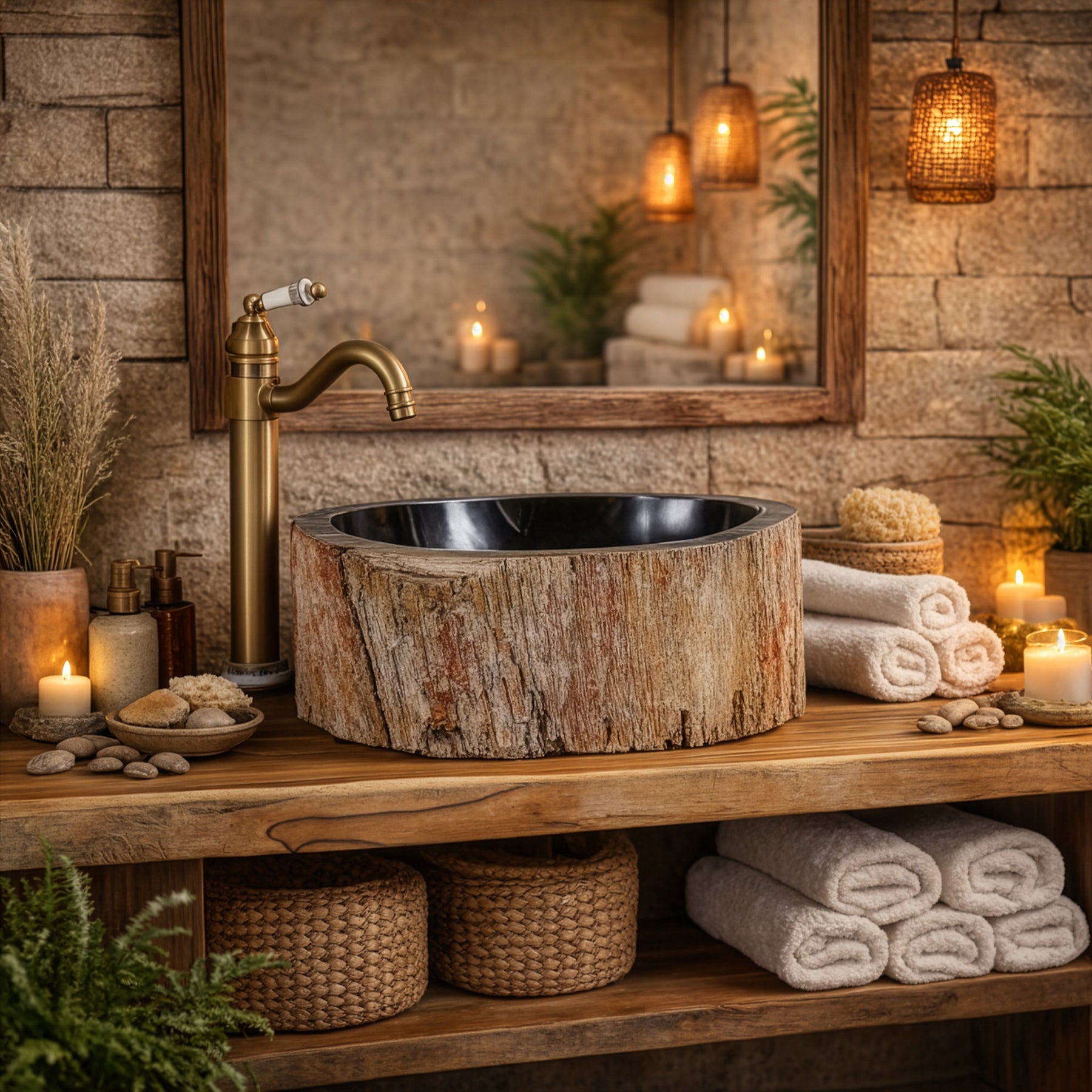 Un Lavabo en pierre et bois pétrifié – chacun est naturellement unique