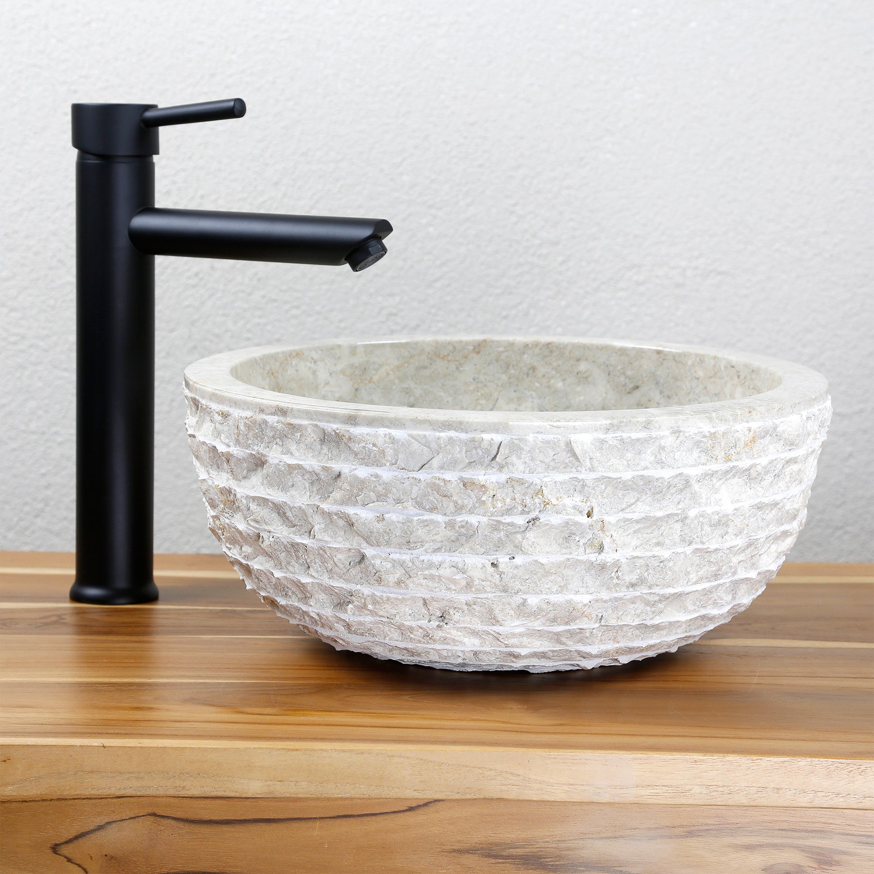 Cette pierre naturelle Lavabo allie une luminosité douce à une forme moderne et claire. La surface intérieure polie, l'élégante structure en marbre et le contour extérieur rainuré fabriqué à la main confèrent à la vasque à poser une élégance calme et naturelle - parfaite pour les salles de bains modernes, les toilettes d'invités ou les lavabos en bois.