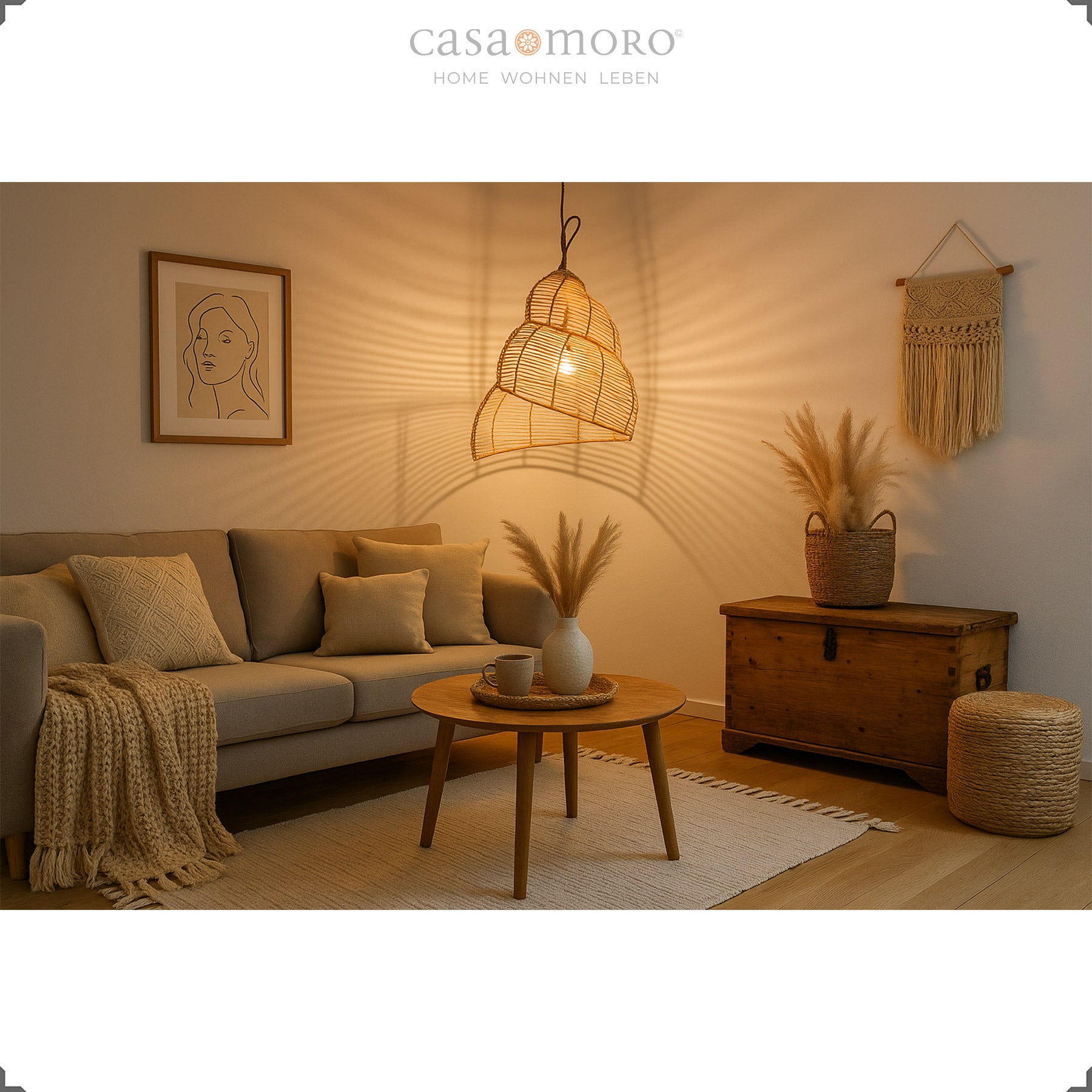 Hinweis: Unsere Rattanlampen entstehen in echter Handarbeit. Leichte Unterschiede in Form, Größe und Farbton sind normal und unterstreichen den natürlichen Charakter.